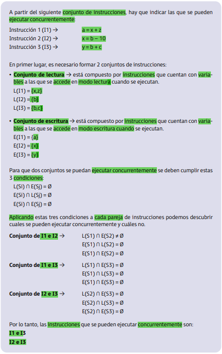 Cada programa se compone de diferentes instrucciones que pueden ser ejecutadas o no simultáneamente - Bernstein