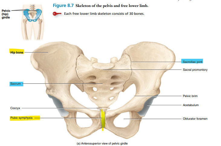 2 bones in pelvic girdle, 30 bones in free lower limbs