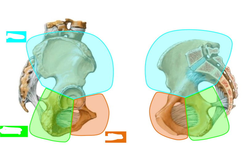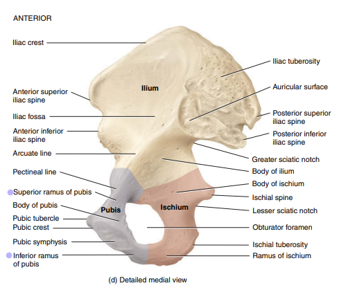The 2 coxal (pelvic) bones join anteriorly by? posteriorly?
