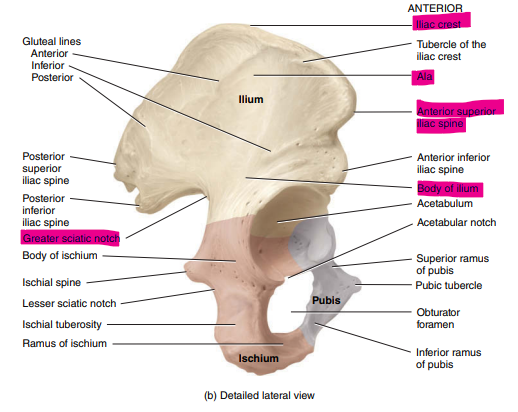 ASIS- anterior superior iliac spine and pubic tubercle lie
