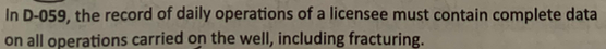 In D-059, the record of daily operations of a licensee must contain complete data on all operations carried on the well, including fracturing.