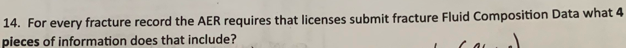For every fracture record, the AER requires that licenses submit fracture Fluid Composition Data what 4 pieces of information does that include?