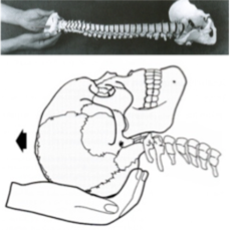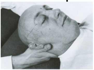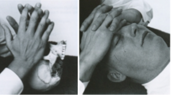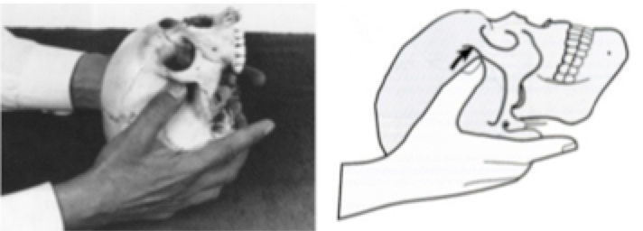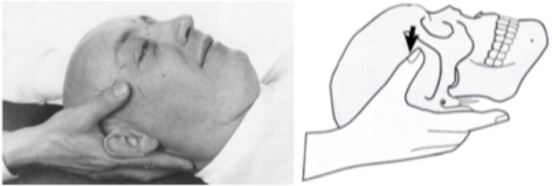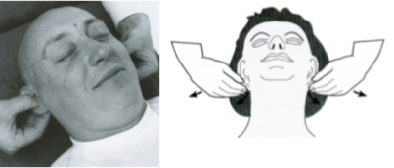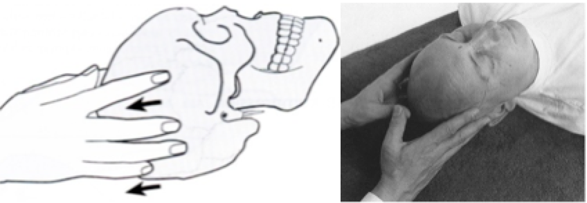 Bij volwassenen is het gewicht van het hoofd genoeg op de normalisatie plaats te laten vinden (middel- en ringvingers hoeven geen trek naar posterior uit te oefenen)