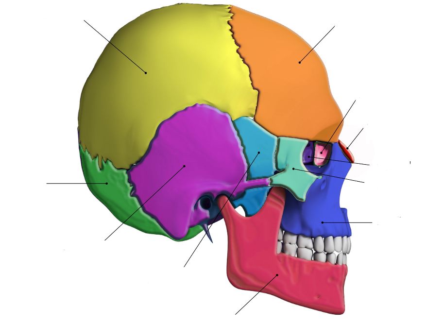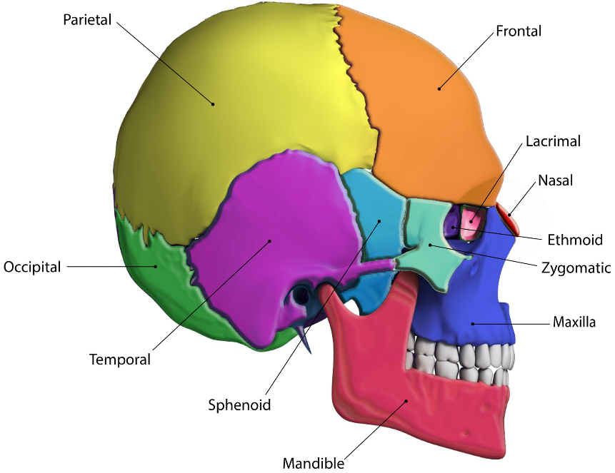What are the bones that make up the skull and facial skeleton?