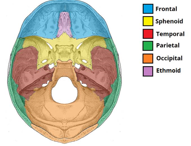 Which bones make up the base of the skull?