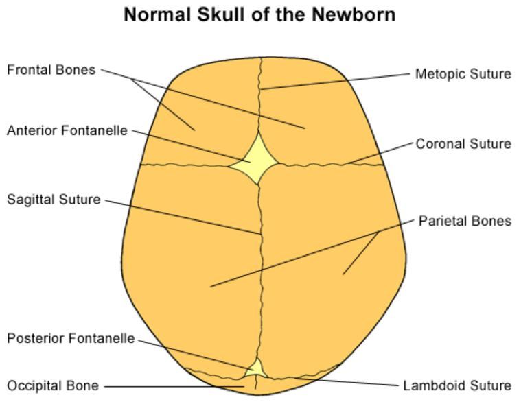 What are the sutures of the skull and what are the joining points you need to know?