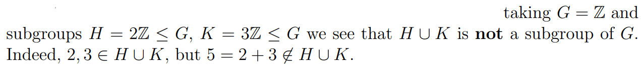 Give an example of a group G and subgroups H ≤ G, K ≤ G