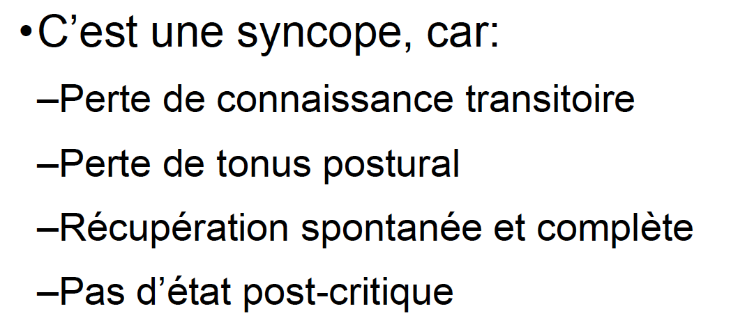 Une perte transitoire de connaissance et de tonus postural, de récupération complète et spontanée.