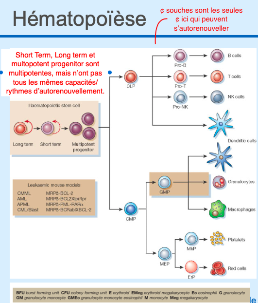 Multipotent progenitor (très court terme): pas d’autorenouvellement