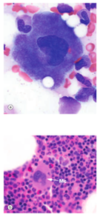 - Les produits de ponction sont étalés sur lame et colorés (Wright Giemsa).