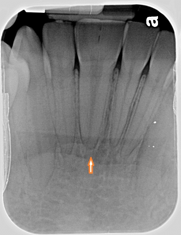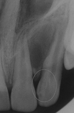What’s happening with the tooth in the marked area?