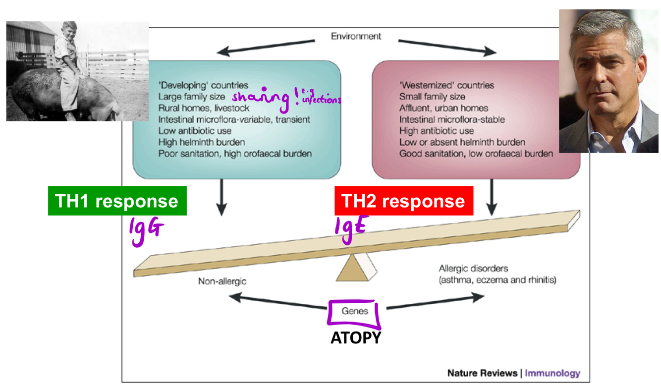 - TH1 response in developing countries forming IgG due to all of their exposures