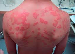 Urticaria is a skin manifestation of allergic reactions. How is it caused?