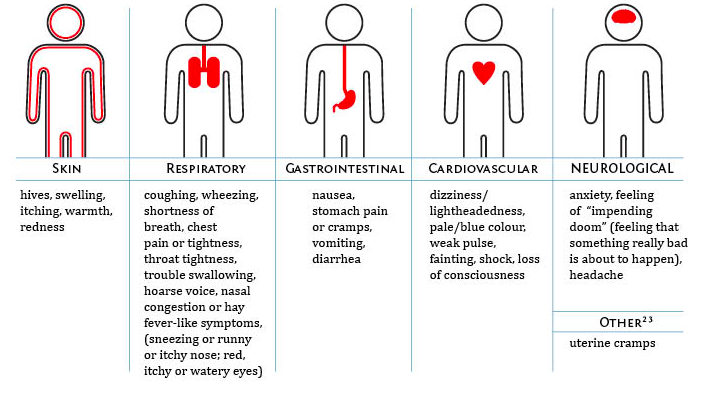 What is the definition of anaphylaxis and what are some of the signs and symptoms?