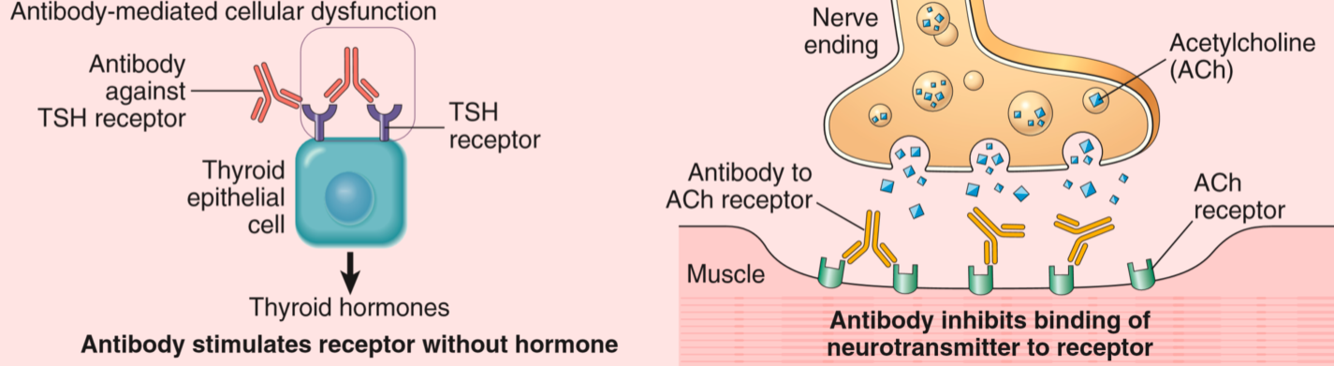What are some examples of diseases cause by type II hypersensitivity reactions associated with changes in receptor function?
