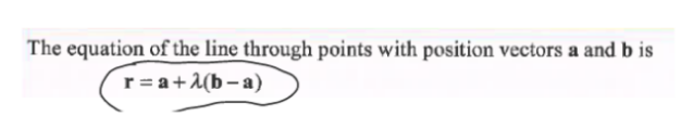 What is the equation of a line through points with position vectors a and b?