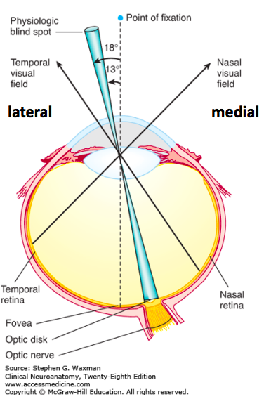 Only Nasal fibers cross optic chiasm (sees temporal part of visual field)