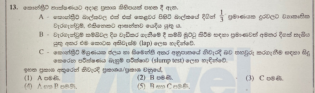 ඉහත ප්රකාශ අතුරෙන් නිවැරදි ප්රකාශය/ප්රකාශ වනුයේ