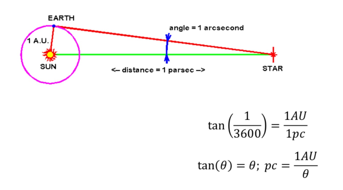 The distance at which a radius of 1AU subtends an angle of 1 arcsecond