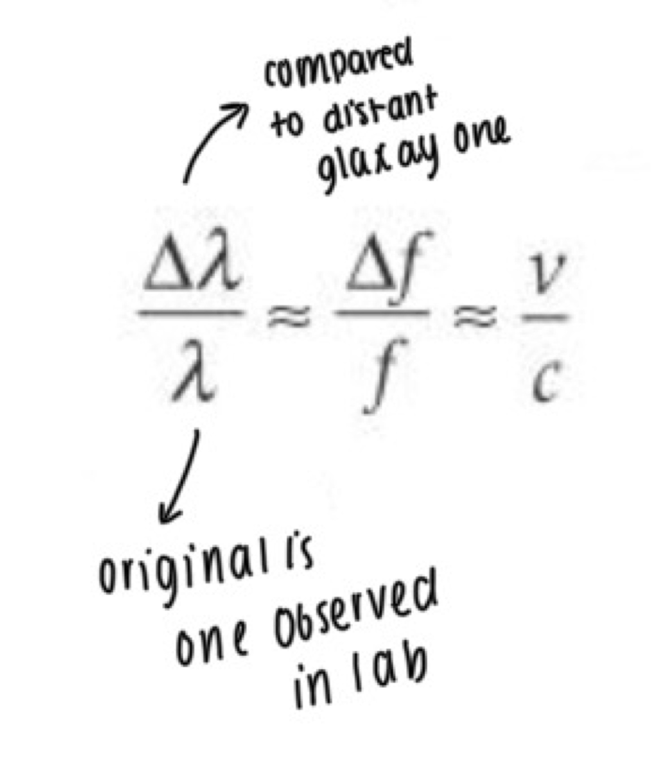 Most light from distant galaxies is red shifted, showing that galaxies are moving away from Earth, this suggested that space and time is expanding