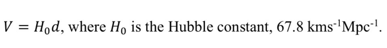 The recessional velocity v of a galaxy is proportional to its distance from Earth. The further away a star is from Earth, the a faster it is moving from us
