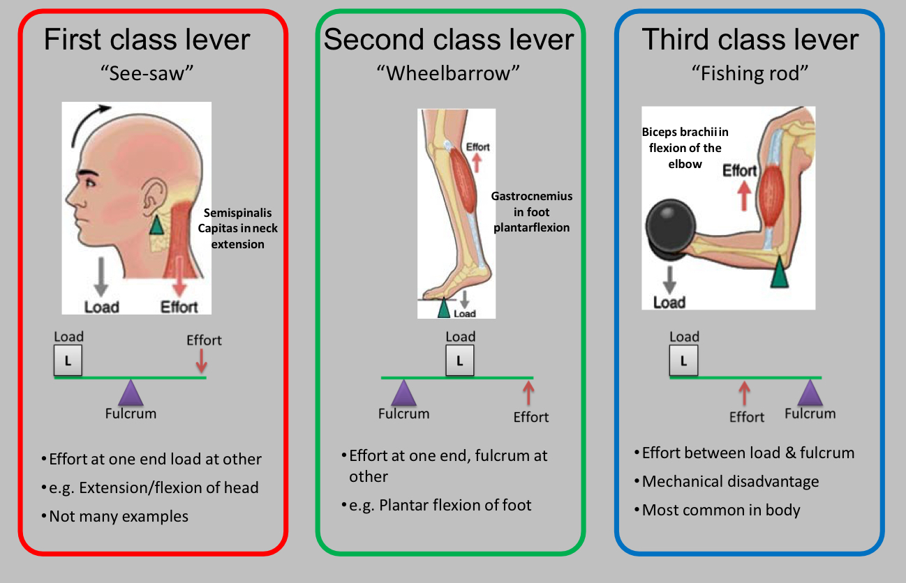What are the three types of levers in the human body?