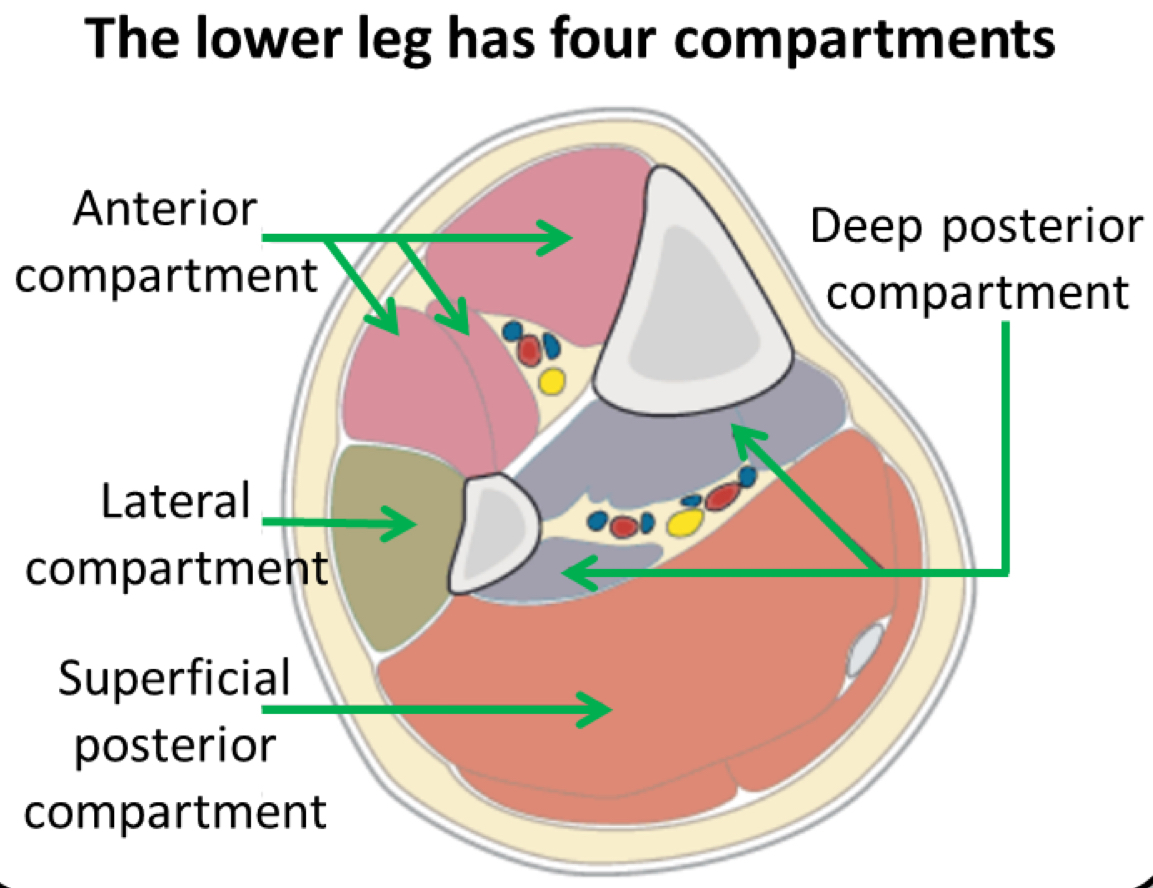 What are the four compartments of the lower leg?