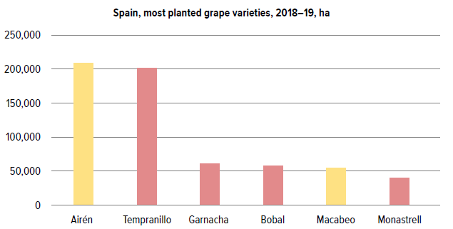 N.B. as of 2021, Tempranillo is now the most widely planted