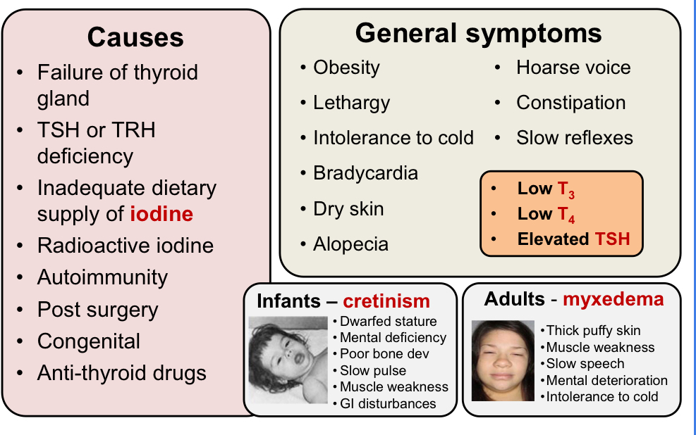 What are some causes of Hypothyroidism and what are the general symptoms?