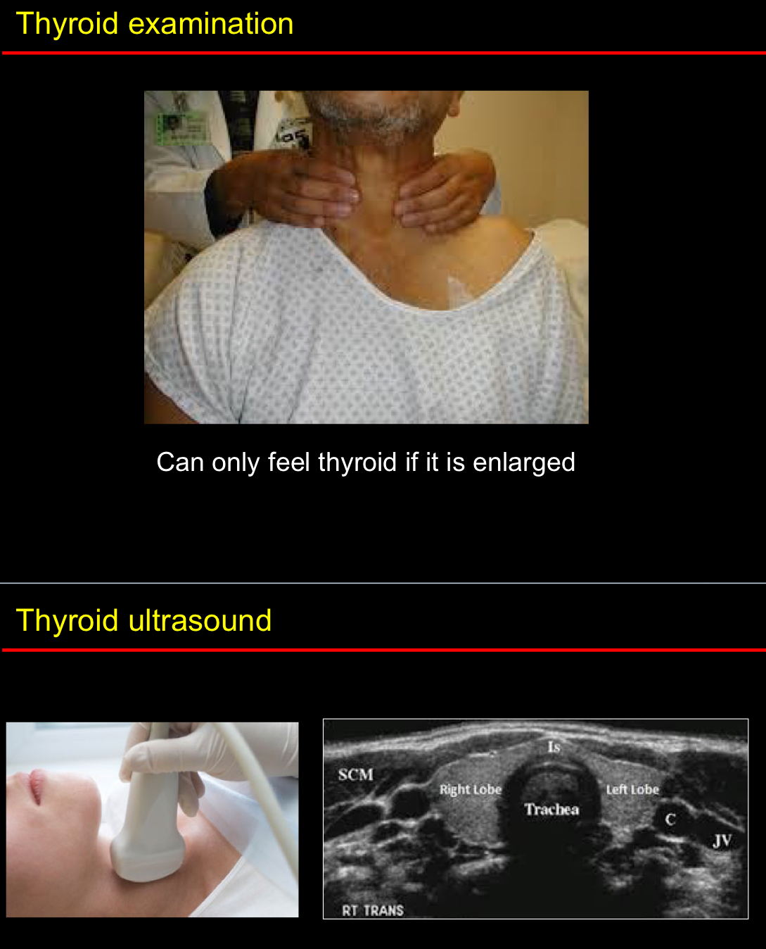 What examination can you use to look at the thyroid function?