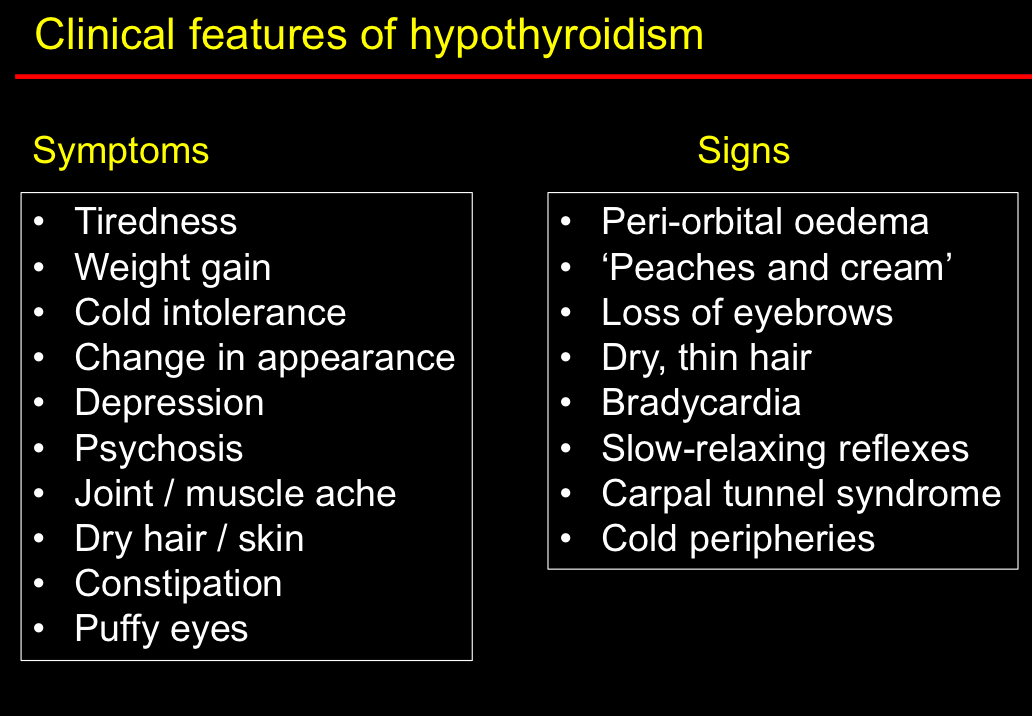 What are some of the symptoms and signs of hypothyroidism?