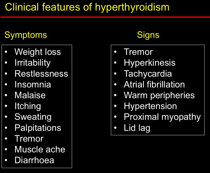 What are some signs and symptoms of hyperthyroidism?