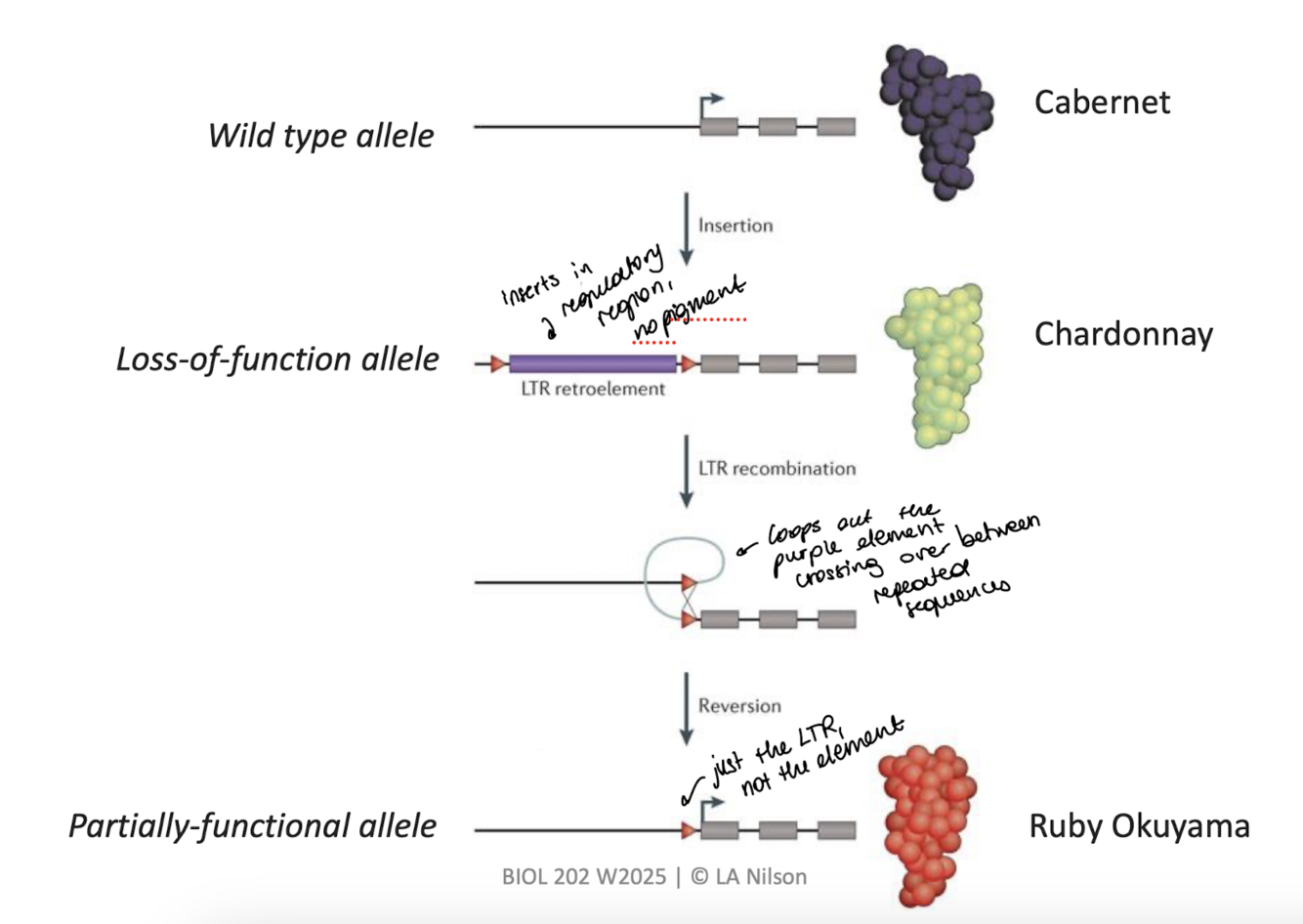 how are different grape colors caused by transposable elements