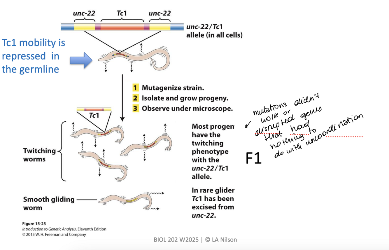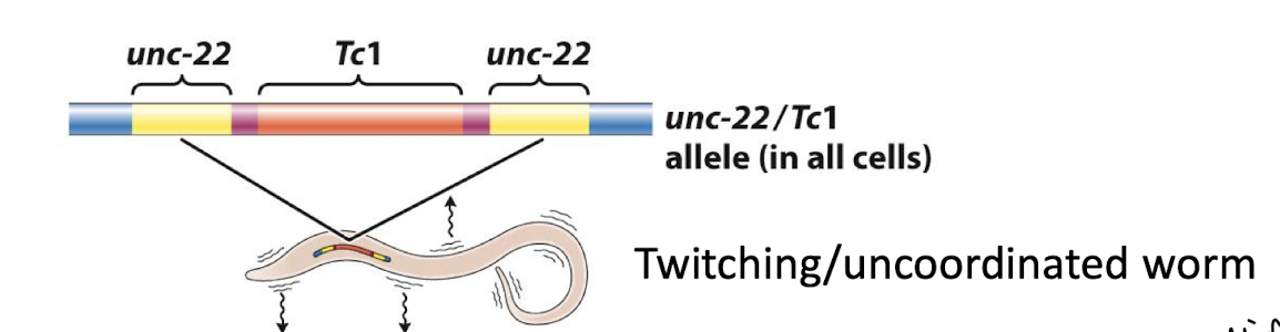a gene was mutated, which allowed Tc-1 to jump out and restore unc22