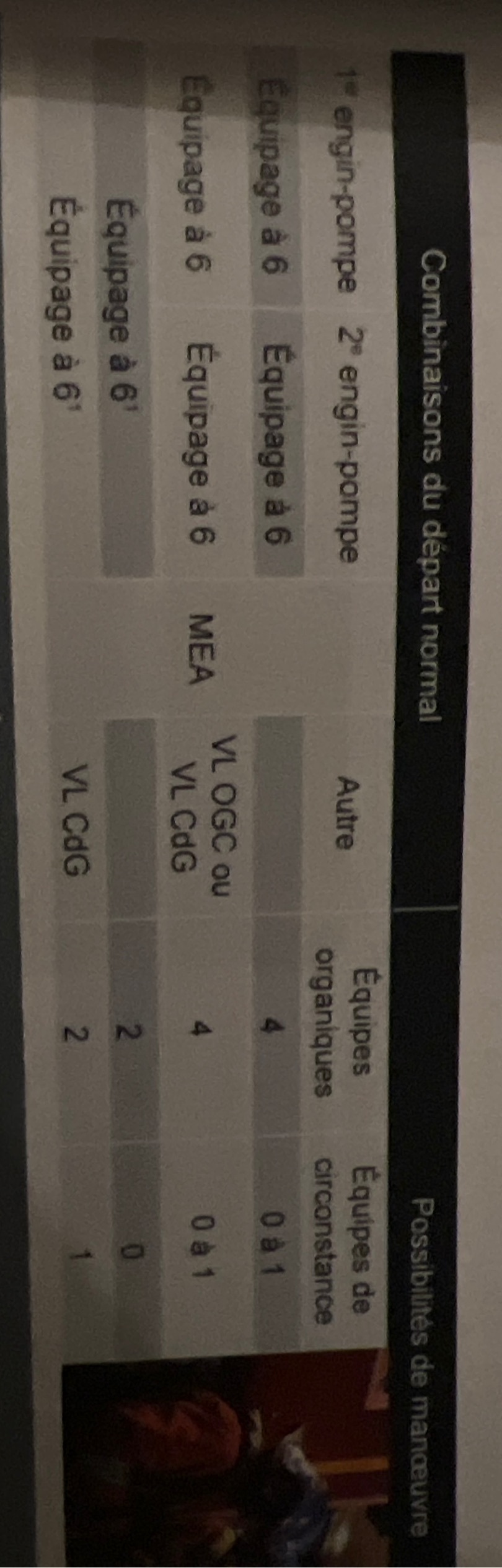 Indépendant de ce qui est fixé par le document de formation technique 728 et celui propre à chaque MEA à son arrivée sur intervention. Le conducteur du premier MEA engagé dans le cadre d’un départ normal doit: