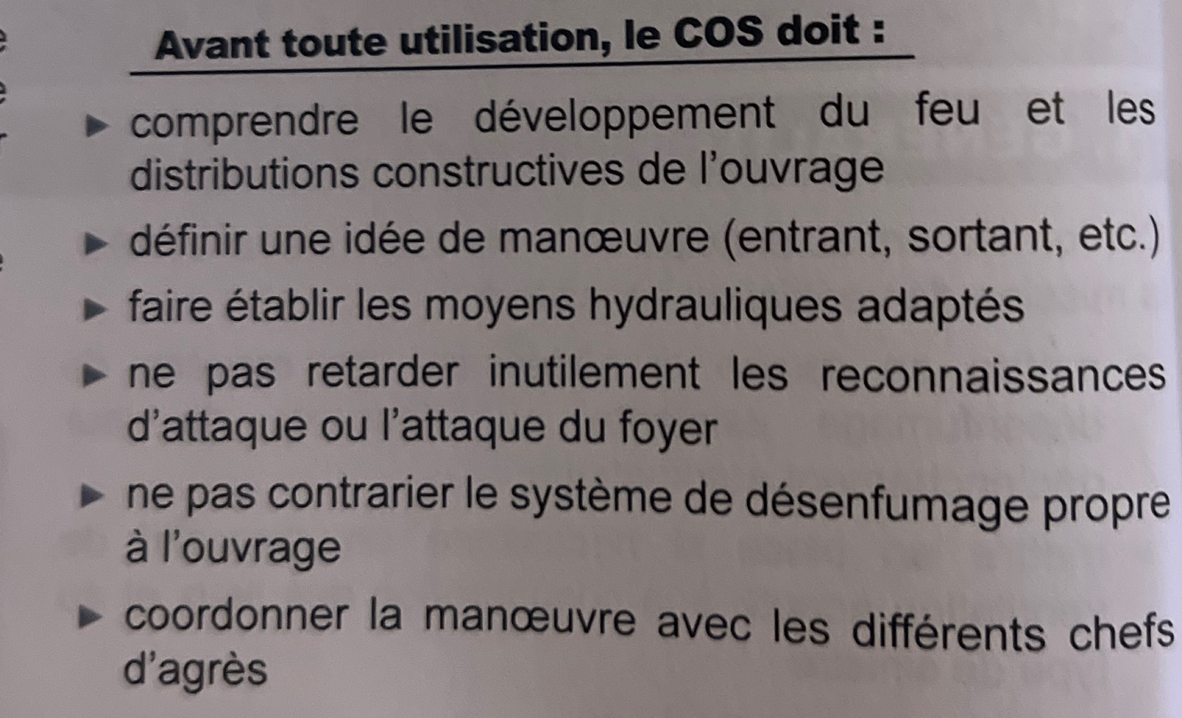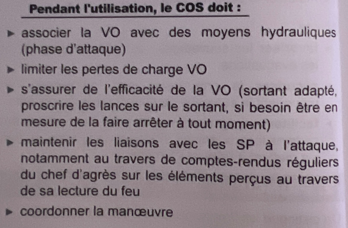 En fonction de la situation à son arrivée, si le COS décide de la mise en place de la VO il doit :