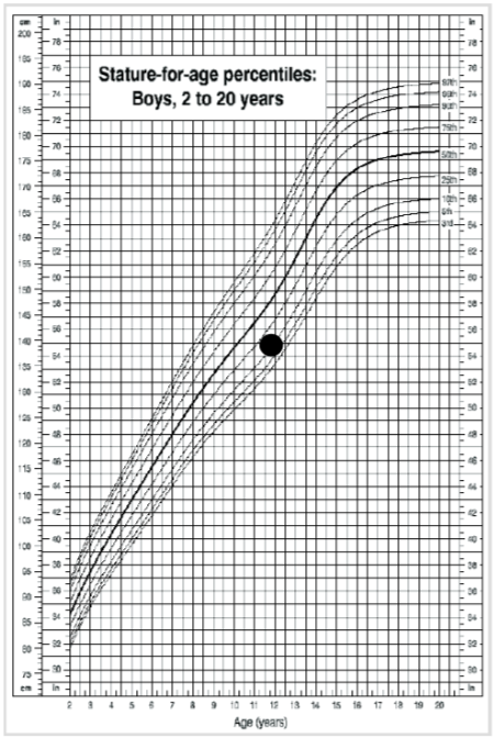 Ahmed is an 18 year old boy who went to a doctor asking for weight- controlling pills claiming that he is overweight. His weight on the age- weight graph was as shown. What does Ahmed have?