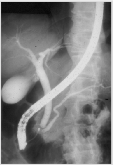 Note: pancreatic calcifications are noted in the x-ray and are indicative of chronic pancreatitis