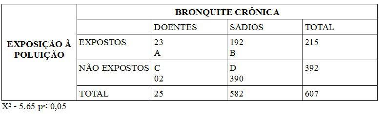 Estudo prospectivo concorrente foi desenvolvido com o objetivo de verificar a associação entre poluição atmosférica e bronquite crônica. Os dados estão apresentados na tabela. (VER IMAGEM) De acordo com os dados da tabela, as seguintes afirmações estão corretas, EXCETO: