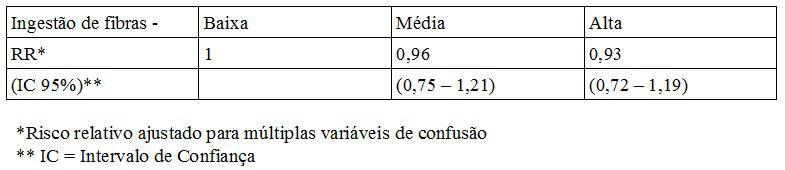 A ) Houve efeito protetor pela ingestão de fibras, porque os riscos relativos foram menores do que 1,0 nos grupos de média e alta ingestão de fibras.