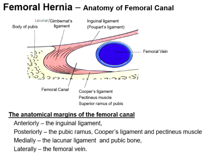 § Femoral vein § Femoral artery § Femoral nerve § Medial side of the rectus abdominis § Inguinal ligament