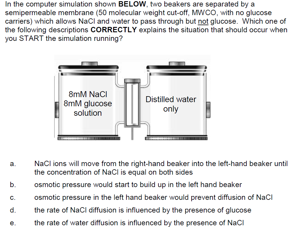 In the PhysioEx simulation of facilitated diffusion, you built a membrane that held different numbers of ‘glucose carriers’ and recorded rates of glucose diffusion. The addition of NaCl to the glucose solution in one beaker ____________ the rate of glucose transport because ____________ .