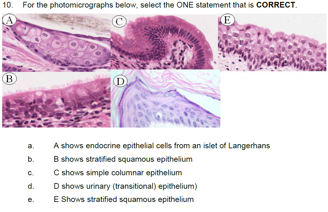 c. C shows simple columnar epithelium