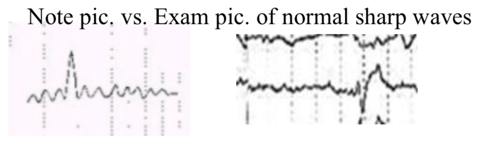 Note: the picture in the exam had a drop below the baseline BEFORE the sharp wave which confused some students and made them choose A. Interictal sharp waves usually have a drop below the baseline by the descending limb of the sharp wave (not before the sharp wave itself).