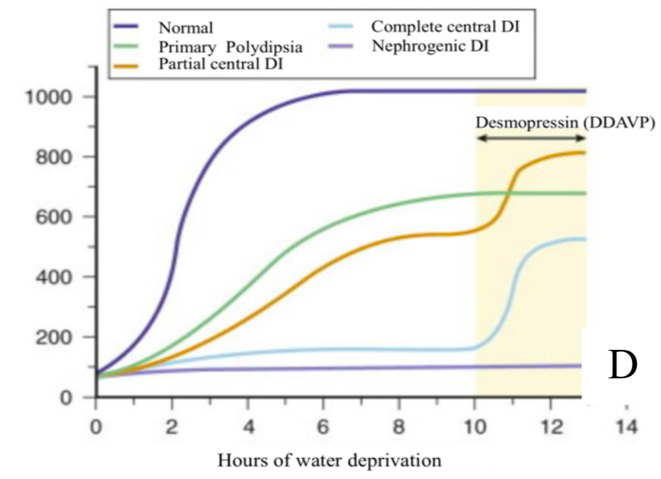 In the following graph what represents nephrogenic diabetes insipidus?