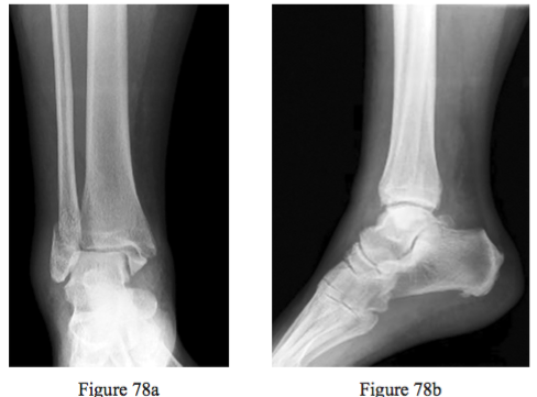 Figures 78a and 78b are the radiographs of a 62-year-old woman with long-standing type 1 diabetes mellitus who fell and injured her right ankle. Her HbA1c level is 8%, or 64 mmol/mol. She has loss of protective sensibility that is con rmed via testing with a 5.07 Semmes-Weinstein monofilament. What is the best next step?