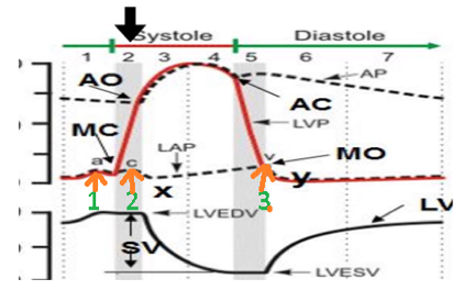 opening of the mitral valve occurs in which number(green) in pic?