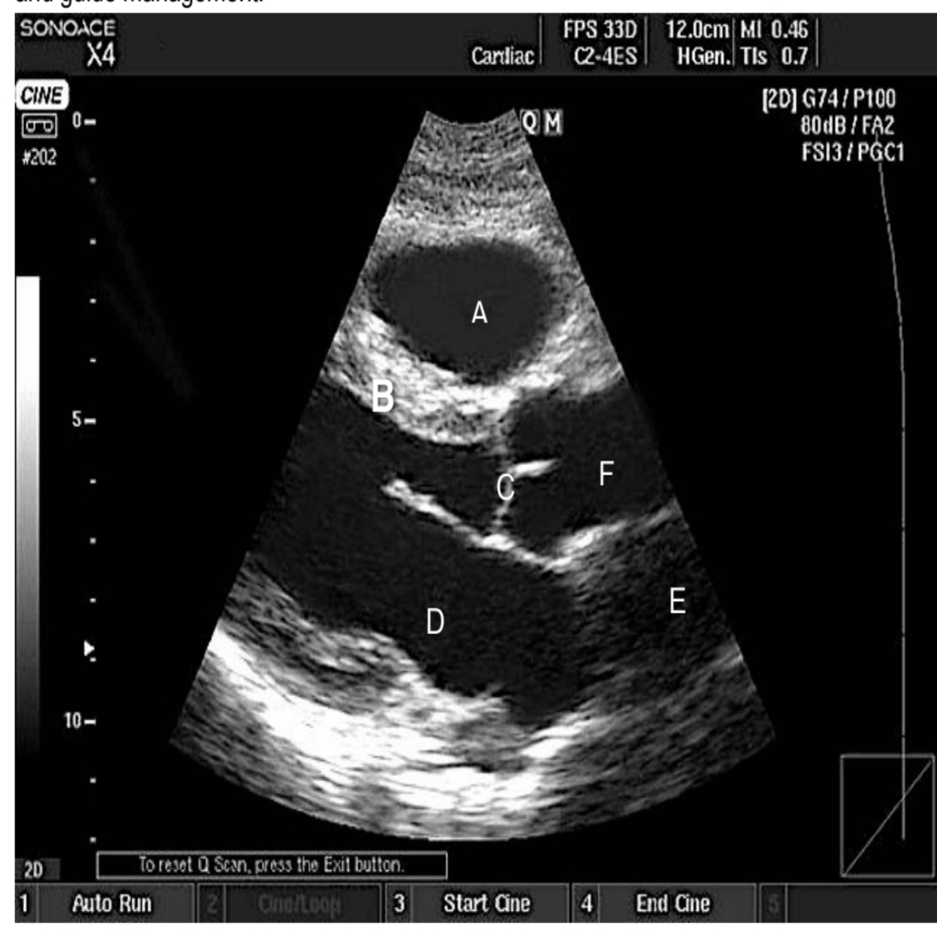 A patient in ICU is hypotensive. You decide to use the transthoracic echo to investigate the cause