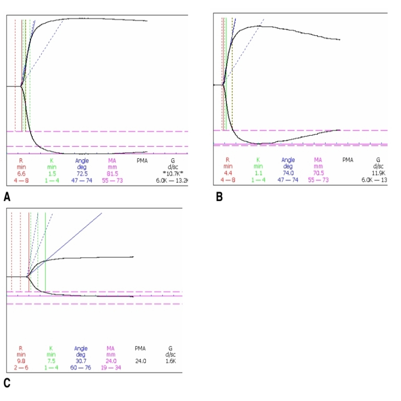 Serial thromboelastograms (TEG’s) were done on a septic ICU patient.