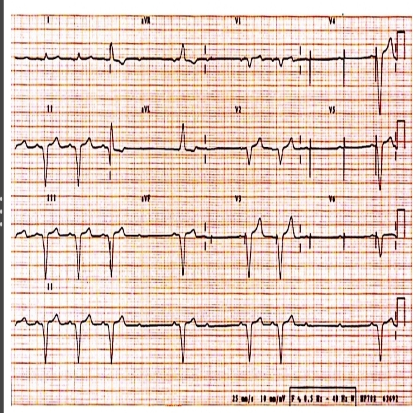 inguinal hernia repair. On enquiry he confirms recent onset of syncope. Below is his admission ECG